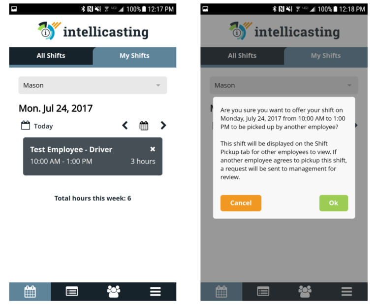 You can view the Shift Pickup List to view manager requested shifts and employee requested shifts by selecting the “+” icon. Managers can broadcast vacant shifts that they are trying to get covered. You can also pickup shifts from other employees that they are trying to get covered.