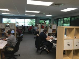 Our new space is more inviting and allows more room for departments to grow, as well as harness our internal communication more effectively. Our development team is no longer crowded together, but has a creative seating arrangement that allows for both group and individual work. Our IT support team has a quieter space that provides them privacy for even better phone support and hardware work-space. The entire development team now has stand up / sit down desks as well, which has done wonders in helping keep them more refreshed and ready for action.
